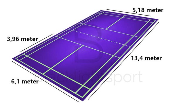 – 4 x korte zijde = 4 x 6,1 = 24,4 meter (inclusief bovenrand van het net)